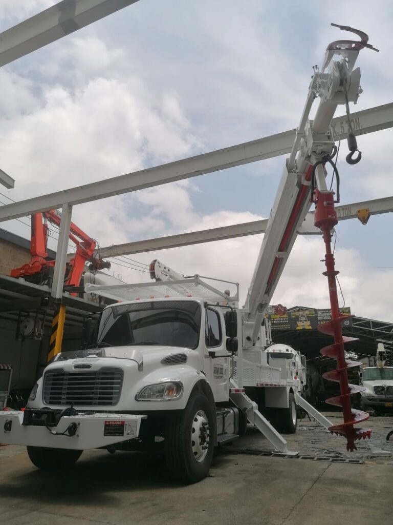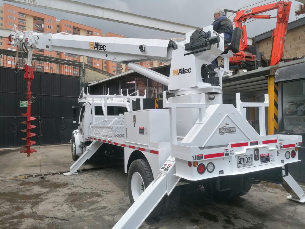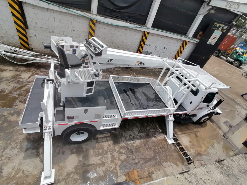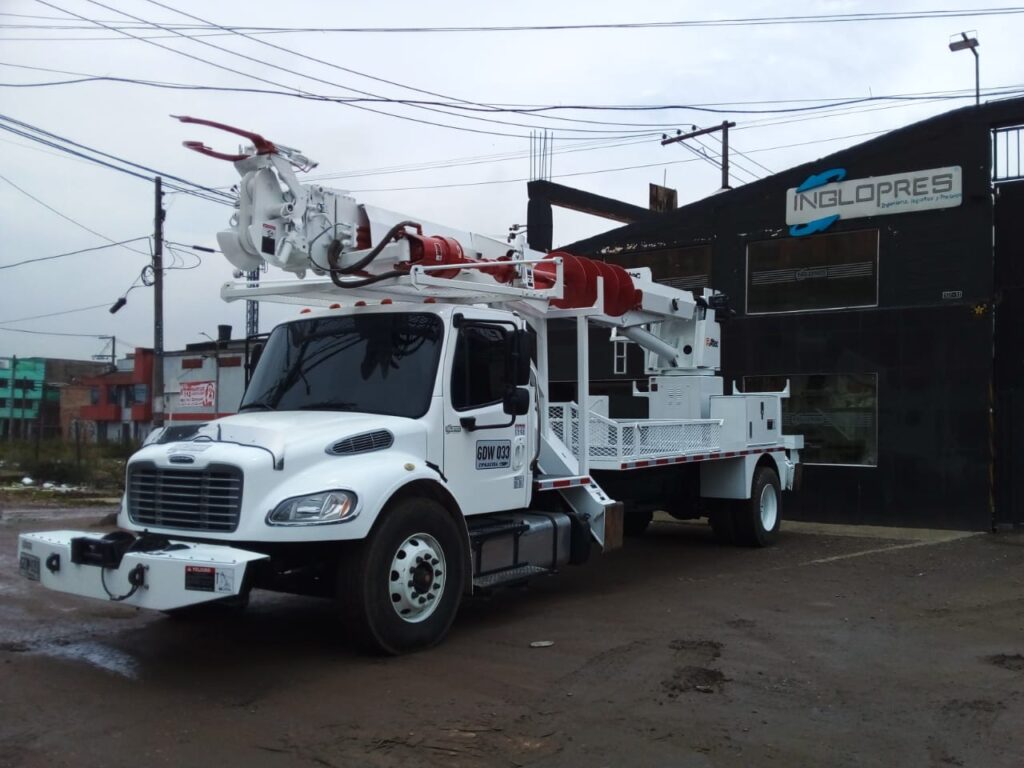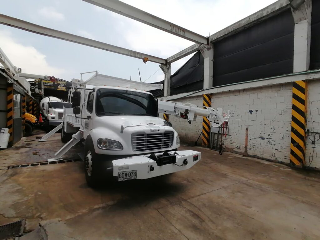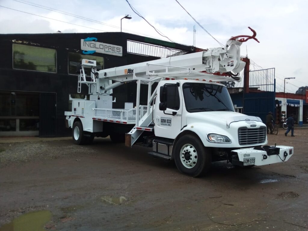 Freightliner M2 106 año 2016, motor cummins ISB 300 HP, 40.000 km originales, suspensión airliner, doble tanque de combustible, silla neumática full equipo, americana, equipado grúa degger Derrick marca ALTEC equipo referencia D3060, montaje original americano, PTO, bomba, mangueras estabilizadores tipo v nuevos, burros para postes de 3800 kg, equipo recién remanufacturado, aislado a 46 kva, tiene winches con retractor de cable de 75 mil libras