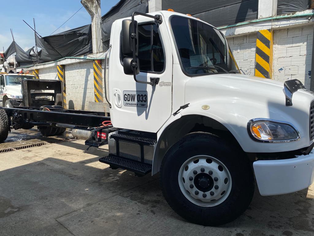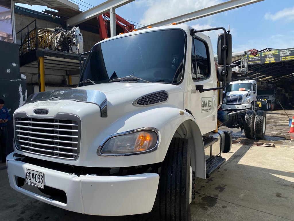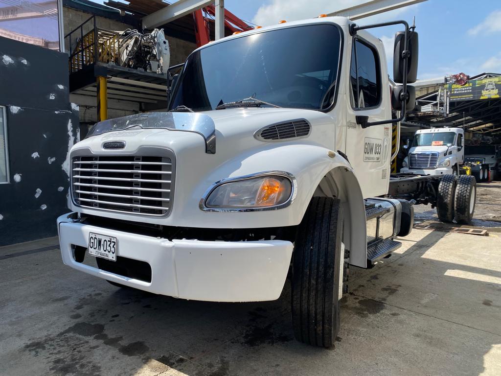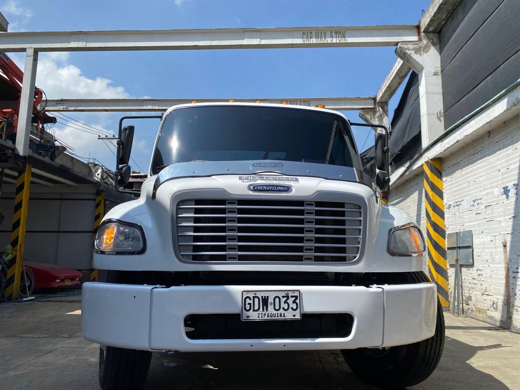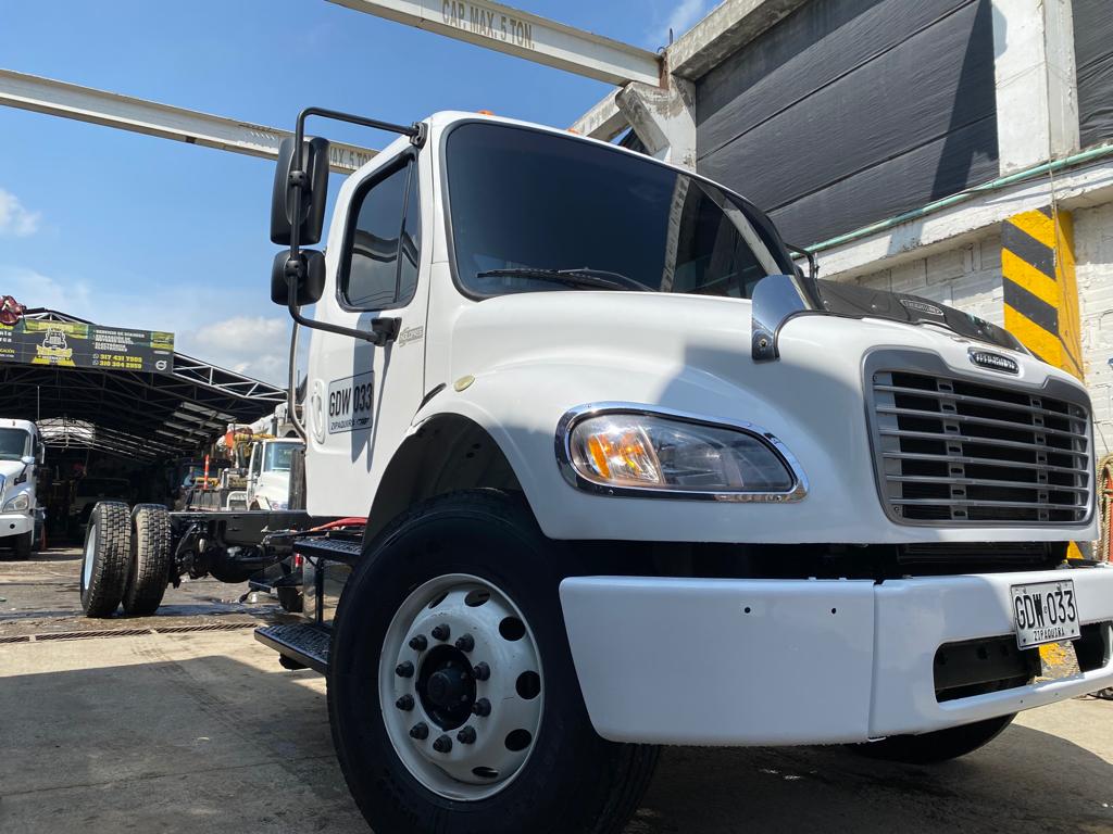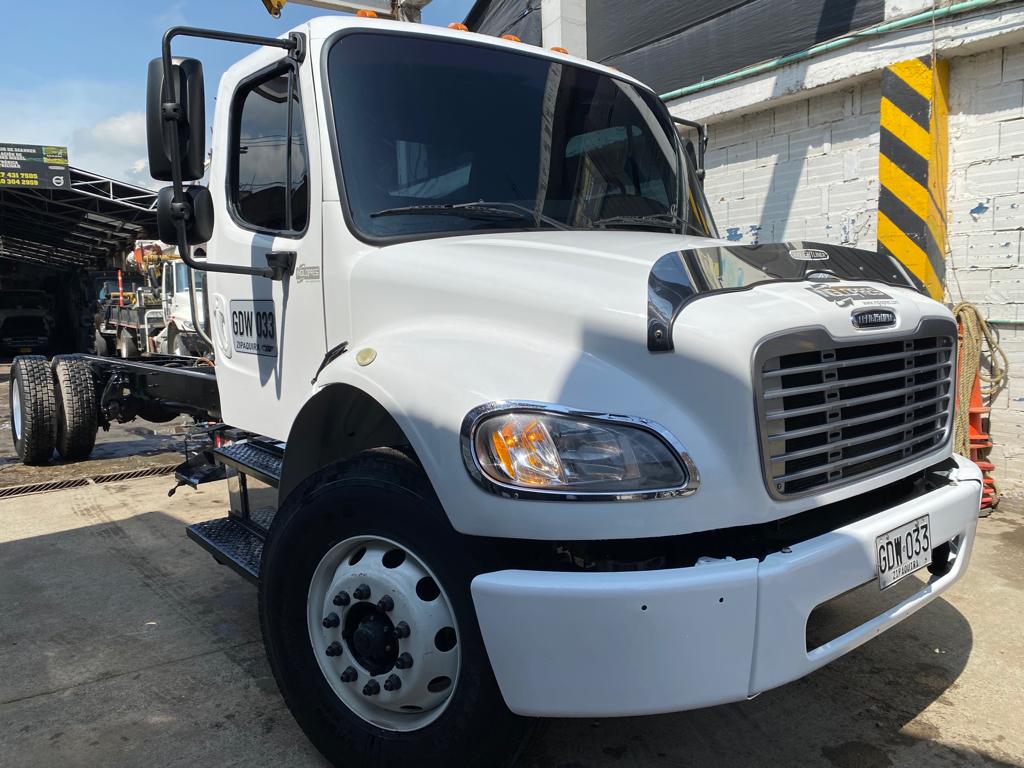 Camión grúa aérea en chasis, marca Freightliner, línea M2 106 año 2016, motor cummins ISB programable a 300 hp, 40.000 km originales, suspensión air liner, llantas nuevas, aire acondicionado, silla neumática, doble tanque de combustible en aluminio, con Uría, 7.10 metros distancia entre ejes, 9.30m largo total